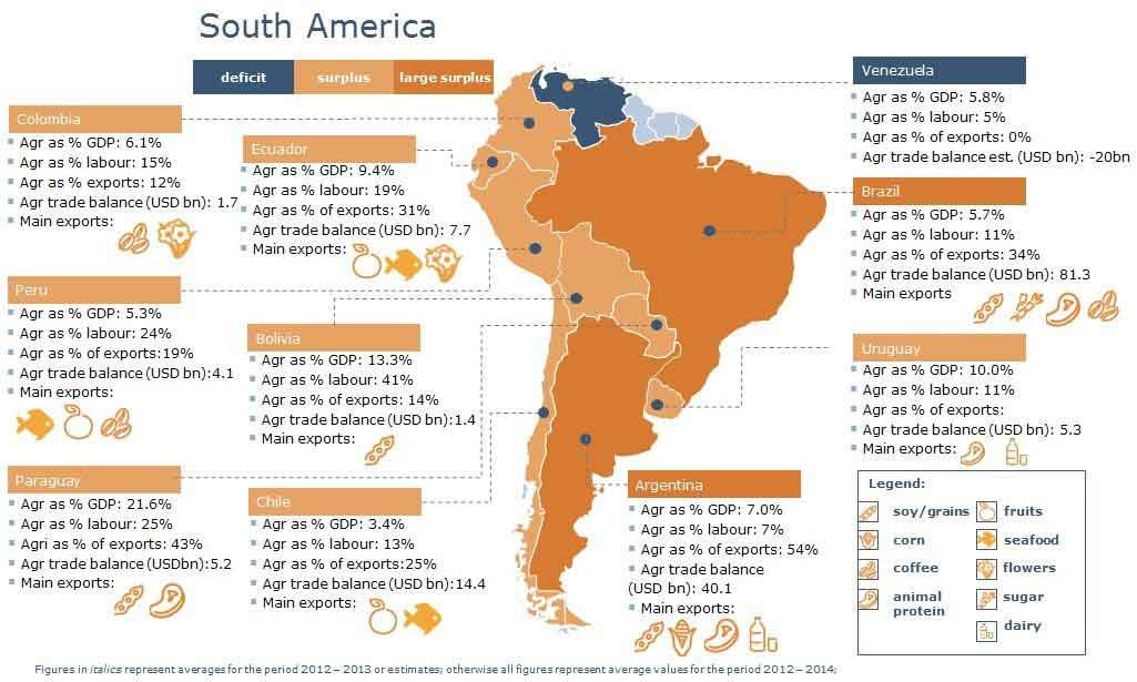 First, let’s take a look at the distribution of agricultural GDP in South America.