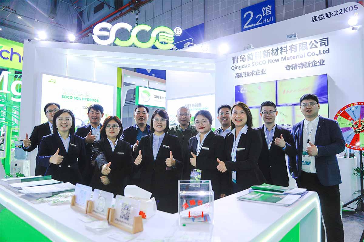 On March 15th, the CAC Agrochemical and Plant Protection Exhibition concluded successfully in Shanghai. In this grand agricultural industry event, Qingdao SOCO® New Materials stood out with its industry-leading soil water-retaining agent product series, becoming a major highlight of the exhibition.